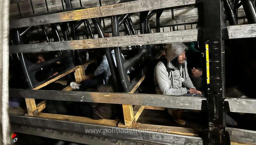 În urma efectuării controlului amănunţit al mijloacelor de transport, au fost descoperiţi, ascunşi în semiremorci, printre bunurile transportate, 21 de cetăţeni străini.