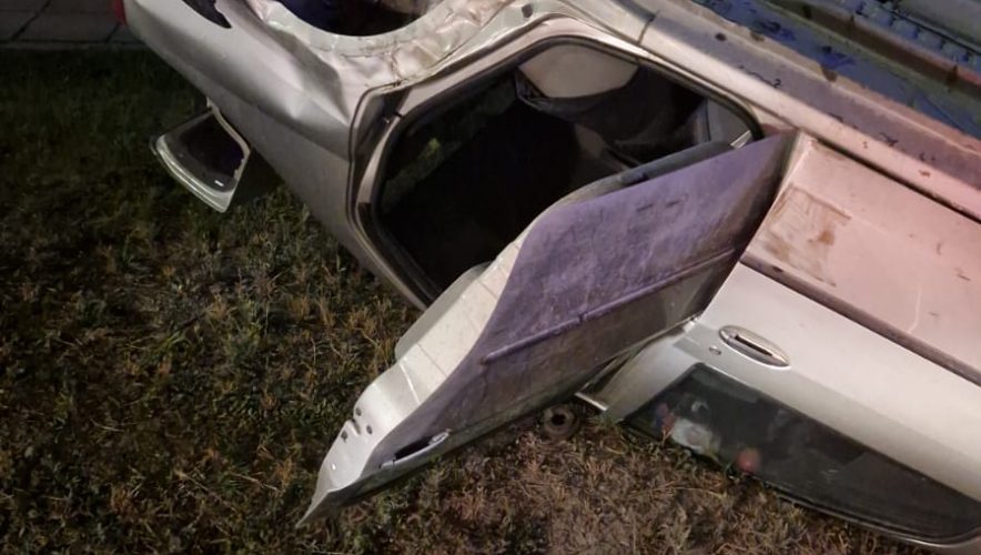 Două autoturisme sunt implicate, dintre care una răsturnată. În total sunt șase victime asistate, dintre care patru adulți și doi minori.