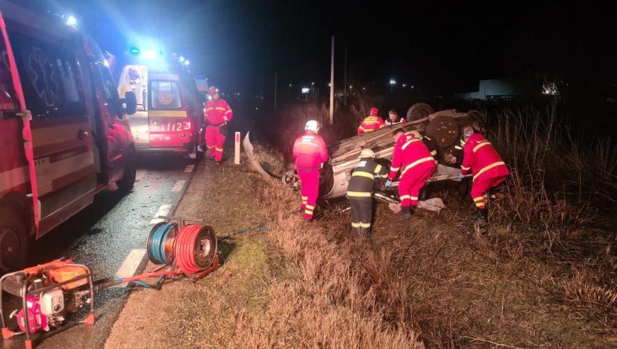 În această noapte, în jurul orei 02:15, pompierii militari arădeni au fost solicitați să intervină în urma unui accident rutier în care a fost implicat un autoturism, la ieșirea din localitatea Horia, spre Arad.