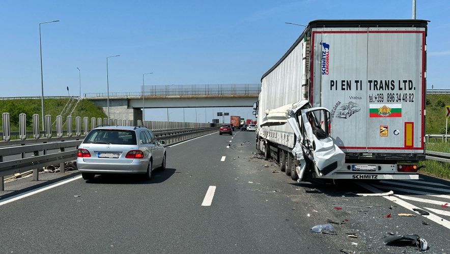 Un grav accident de circulație a avut loc, luni, pe autostrada A 1, sensul Timișoara – Arad. Șoferul unei dubițe care a izbit din spate un TIR a fost rănit. O bucată din cabină, cu tot cu portiera a rămas înfiptă în autotren.