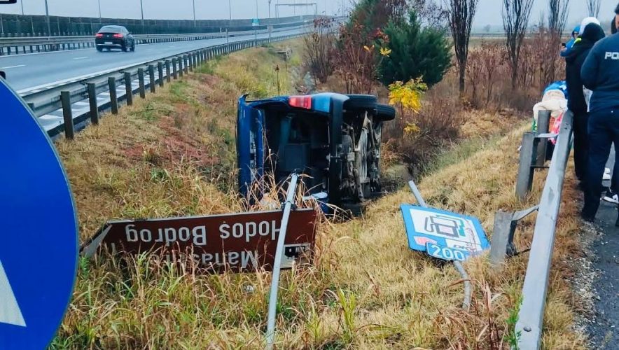 Un autoturism a ieșit în afara carosabilului și s-a răsturnat. Breteaua de ieșire A1 Zadareni este închisă.