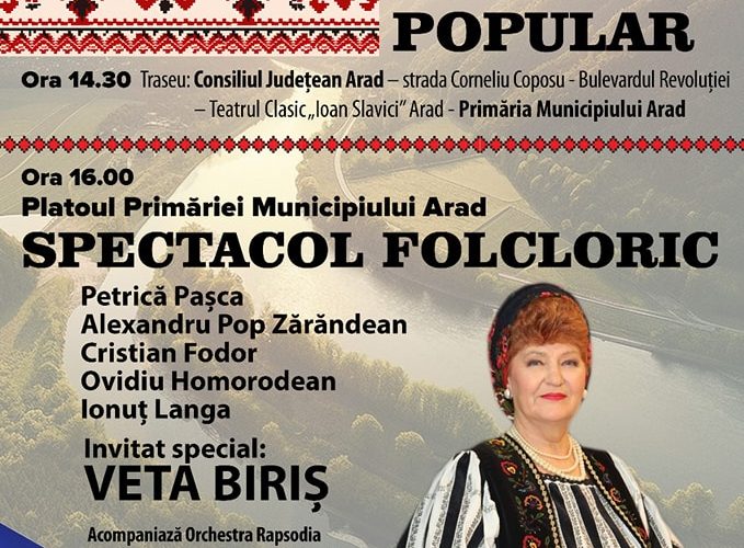 Parada se va încheia cu un 𝐬𝐩𝐞𝐜𝐭𝐚𝐜𝐨𝐥 𝐟𝐨𝐥𝐜𝐥𝐨𝐫𝐢𝐜 de excepție, care va începe la 𝐨𝐫𝐚 𝟏𝟔.𝟎𝟎, pe 𝐩𝐥𝐚𝐭𝐨𝐮𝐥 𝐏𝐫𝐢𝐦𝐚̆𝐫𝐢𝐞𝐢 𝐌𝐮𝐧𝐢𝐜𝐢𝐩𝐢𝐮𝐥𝐮𝐢 𝐀𝐫𝐚𝐝.