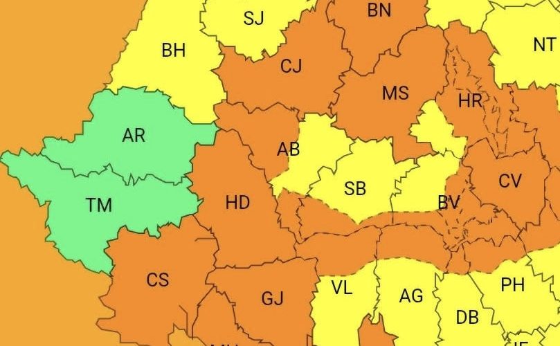 Singurele județe care scapă de vremea rea sunt Aradul și Timișul.