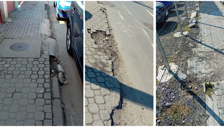 De la Lidl înspre Kaufland, din nou, apar mari probleme. Drumurile arată ca cele dintr-un sat, chiar mai rău, nu ca unele pe care umblă cetățenii unui municipiu precum Arad.