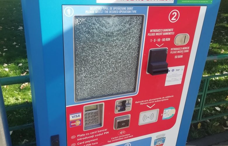 Nici nu au fost bine puse aparatele automate de eliberare a biletelor de tramvai și încărcare a cardurilor electronice, că unul a… cedat. Nu nervos, ci a fost cel mai probabil vandalizat. Este vorba de automatul din stația Crișan în sensul de mers spre Podgoria. Cum scrie pe el: „aparatul nu dă rest”. Dar nici bilete , interacțiunea cu ecranul i fiind practic imposibilă. Acesta a fost pur și simplu spart, astfel că pe el se …lățește o „pânză de paianjen”.