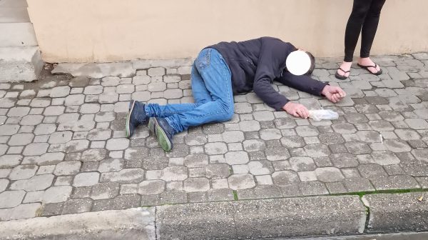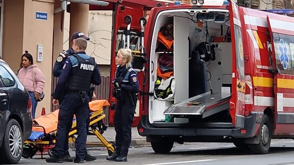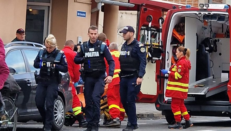 Panică mare pe strada Cocorilor din Arad unde un pieton a căzut pe stradă în față la market.