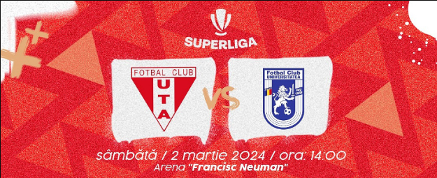 UTA a pus în vânzare astăzi în mediul online biletele pentru meciul din etapa a 29-a a Superligii cu FC U Craiova, care se va disputa sâmbătă, 2 martie, de la ora 14:00, pe Arena „Francisc Neuman”.