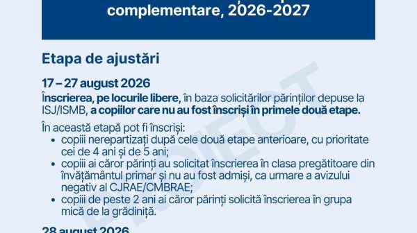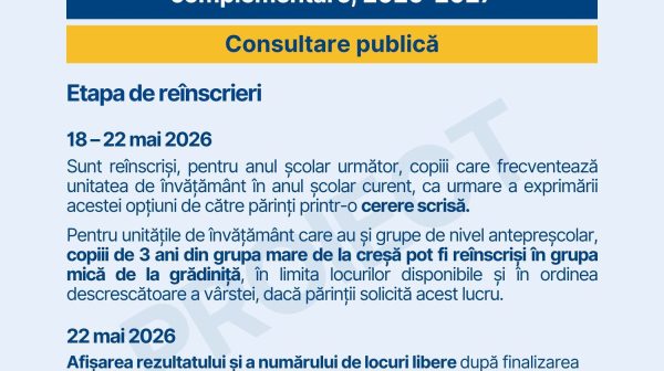 Calendarul de înscriere la creșă/grădiniță și în serviciile de educație timpurie complementare pentru anul școlar 2026-2027, în consultare publică