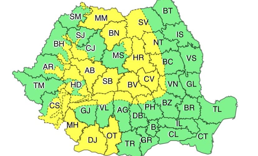 Notă: intensificări temporare ale vântului vor fi pe arii restrânse și în restul teritoriului.