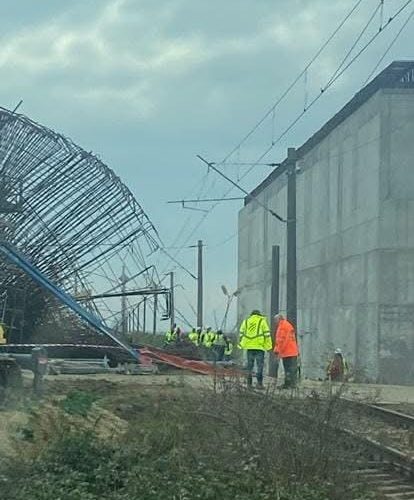 Este circulație feroviară oprită Timișoara-Arad, pe secția 310, luni după amiază, după ce cofrajul unui picior de pasaj de pe lotul 4 Ronaț Triaj-Arad a căzut în gabaritul căii ferate, între Băile Calacea și Orțișoara.