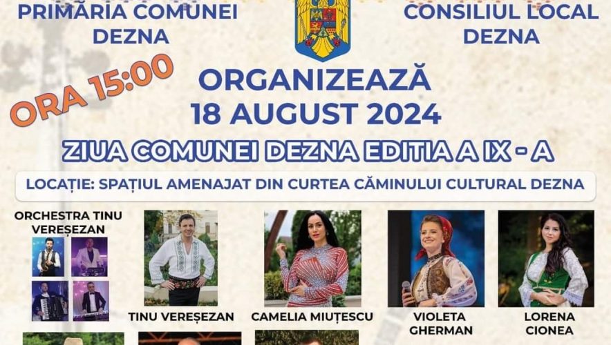 Duminică, 18 august, primăria și consiliul local al comunei Dezna organizează cea de-a IX-a ediție a Zilei comunei.