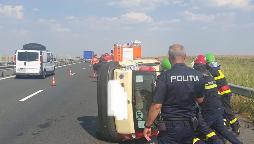 Bărbatul de 75 ani, șoferul autoturismului, este conștient, dar a suferit un traumatism la bazin, traumatism umăr drept și a fost transportat la UPU.