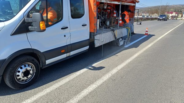 Începând de săptămâna trecută am demarat acțiunile de trasare a marcajelor rutiere și pentru delimitarea carosabilului.