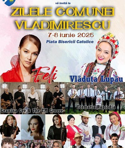 „Sâmbătă, 7 iunie și duminică, 8 iunie vă invităm la Zilele comunei Vladimirescu!