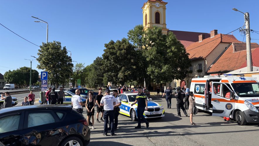Au intervenit șase echipaje ale poliției, mascații, poliția locală și două ambulanțe.