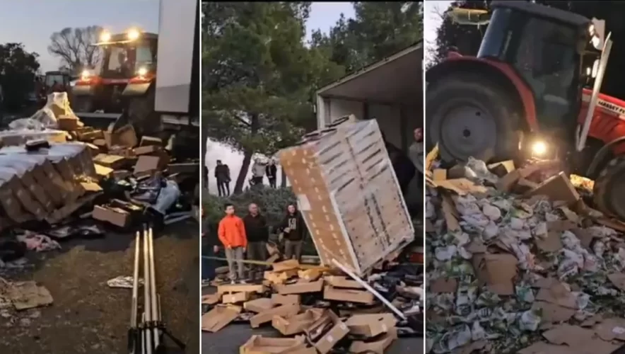 Romina Badea, șofer de TIR: „Între timp, unul din protestatari a venit și s-a urcat cu piciorul pe scara de la camion pe partea mea, pe partea stângă”. Zece tone de carne de pui au fost distruse de protestatari, chiar în fața polițiștilor și jandarmilor.