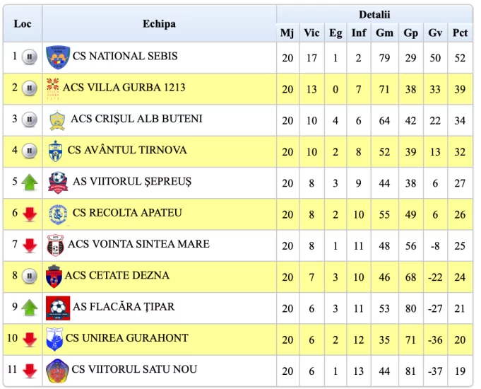 Deja promovată în Liga a IV-a, Național Sebiș a încheiat cu o victorie parcursul din sezonul de Liga V. În ultima partidă din Seria C, sebișenii au trecut cu 4-3 de Crișul Alb Buteni și au ajuns la borna de 52 de puncte.