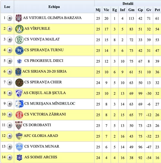 Clasament Liga VI