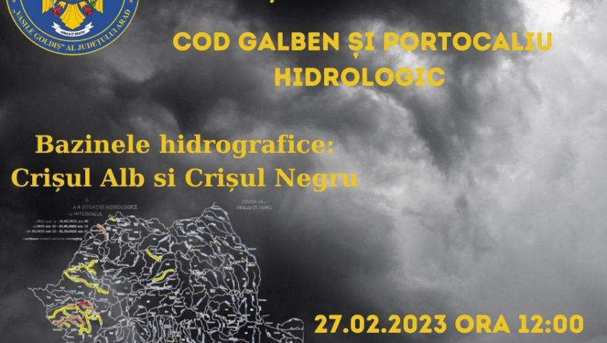 Fenomene hidrologice: Scurgeri importante pe versanti, torenți, pâraie, viituri rapide pe râurile mici. Bazinele hidrografice: Crișul Alb și Crișul Negru Având în vedere avertizările primite, s-a dispus activarea Grupei Operative din cadrul Inspectoratului pentru Situații de Urgență Arad și înștiințarea autorităților publice locale.