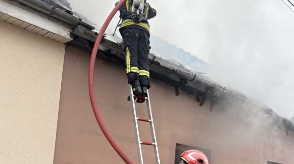 Incendiul se manifesta prin ardere generalizată la nivelul acoperișului, pe o suprafață de aproximativ 200 de metri pătrați. Din primele informații, nu sunt înregistrate victime.