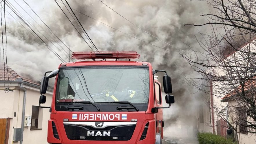 Incendiu izbucnit la o casă din municipiul Arad, pe strada Alexandru Odobescu, din cartierul Grădiște.