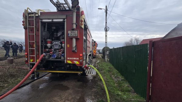 În aceste momente se acționează pentru lichidarea incendiului.