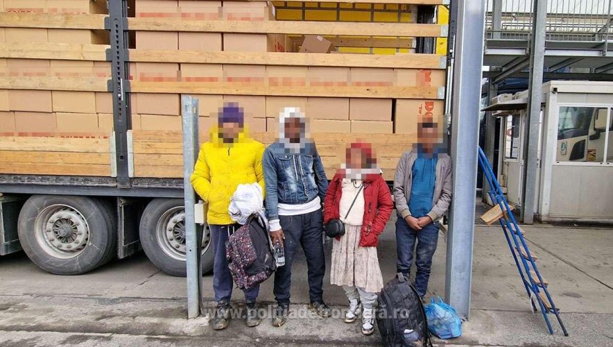 În baza profilului de risc s-a procedat la efectuarea unui control amănunțit al mijlocului de transport în urma căruia polițiștii de frontieră au descoperit, în compartimentul destinat transportului de marfă, printre bunurile transportate, patru cetățeni străini.