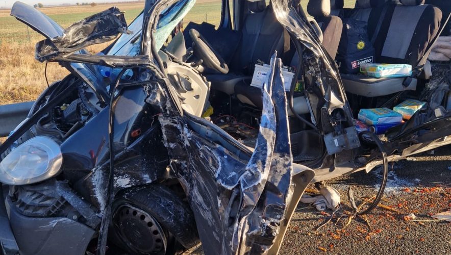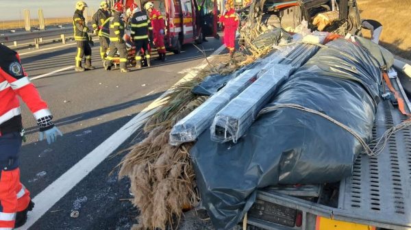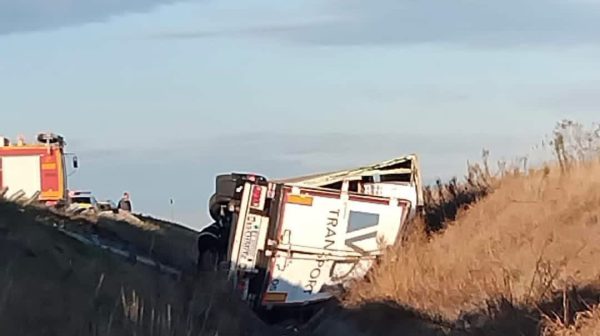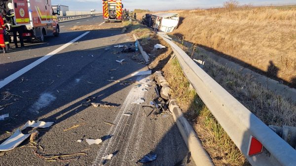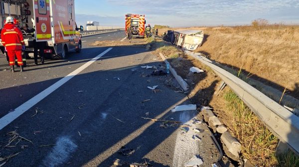 Accident rutier în care au fost implicate un autotren și un microbuz, produs pe sensul de mers Arad – Nădlac – Km 570, pe A1.