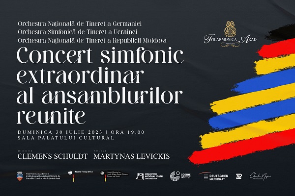 Un ansamblu simfonic extraordinar, alcătuit din Orchestra Națională de Tineret a Germaniei, Orchestra Simfonică de Tineret a Ucrainei și Orchestra Națională de Tineret a Republicii Moldova, totalizând un număr de 113 artiști se întrunește pe scena Filarmonicii din Arad, duminică, 30 iulie 2023, la ora 19.00, oferind sub bagheta dirijorului Clemens Schuldt, unul dintre cei mai apreciați dirijori germani din tânăra generație, un program cu lucrări emblematice pentru spațiile culturale pe care acestea le reprezintă.