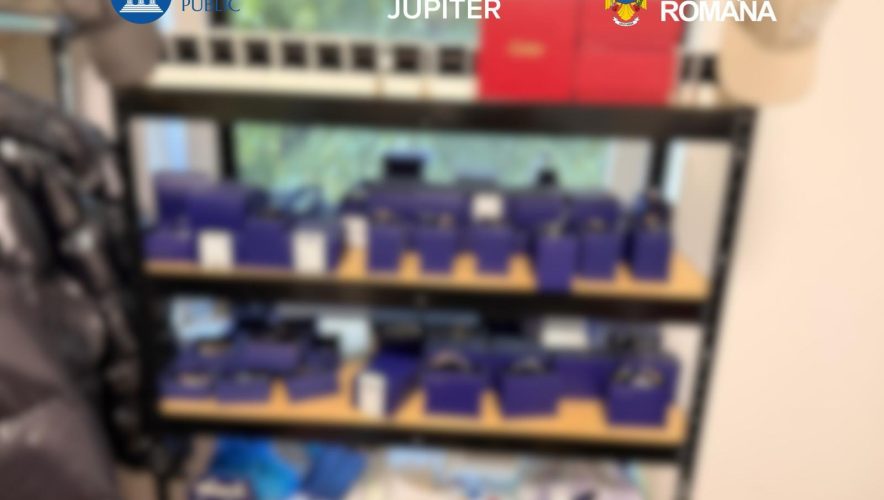 În urma perchezițiilor, polițiștii au ridicat 54 de articole vestimentare, încălțăminte și accesorii, dar și 112 bijuterii, toate inscripționate cu mărci cunoscute din zona produselor de lux.