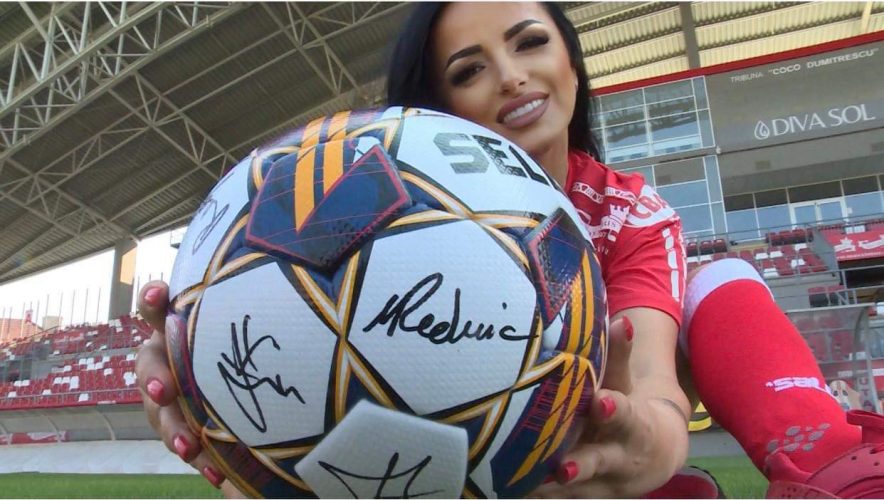 Ramona Elena, suporterița înflăcărată a echipei UTA va scoate la licitație mingea semnată de toți antrenorii din Liga 1 și de toți căpitanii.