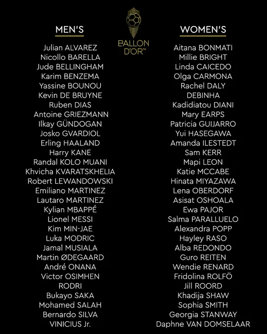 Revista France Football a publicat lista celor 30 de nominalizați la Balonul de Aur 2023, atât la masculin, cât și la feminin, dar și fotbaliștii nominalizați la Trofeul Kopa (pentru cel mai bun tânăr jucător) și Trofeul Yashin (pentru cel mai bun portar).
