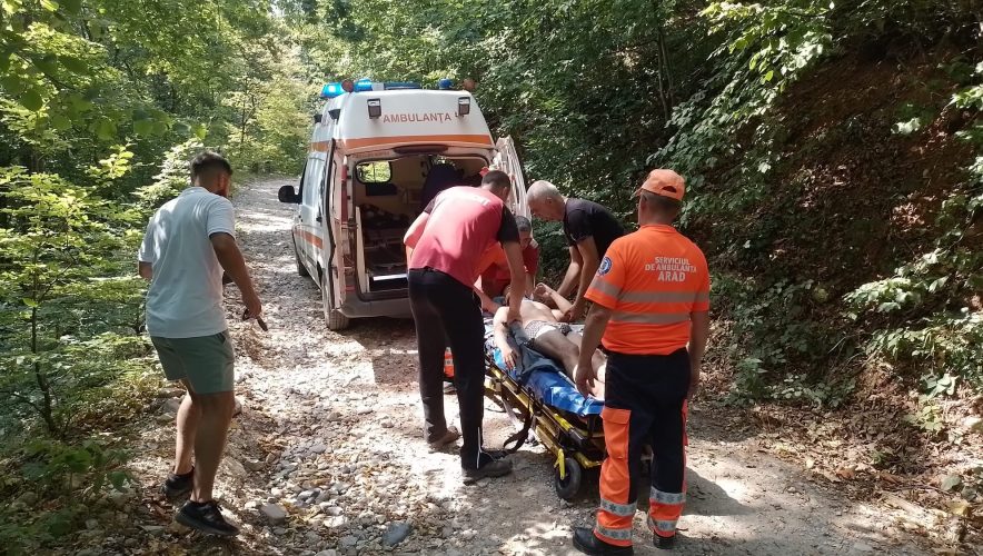 Victima de sex masculin prezintă traumatism de coloană vertebrală, traumatism abdominal, fractură membre inferioare, instabil hemodinamic, se alocă la întâmpinare SMURD Arad.