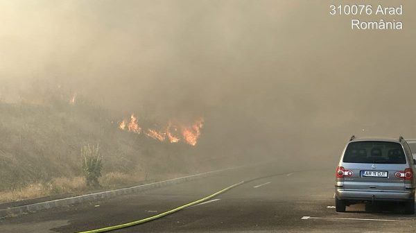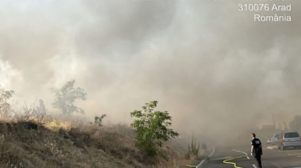 Incendiu vegetatie uscată în zona Alfa. Intervine 3 autospeciale ale Detașamentul Arad.
