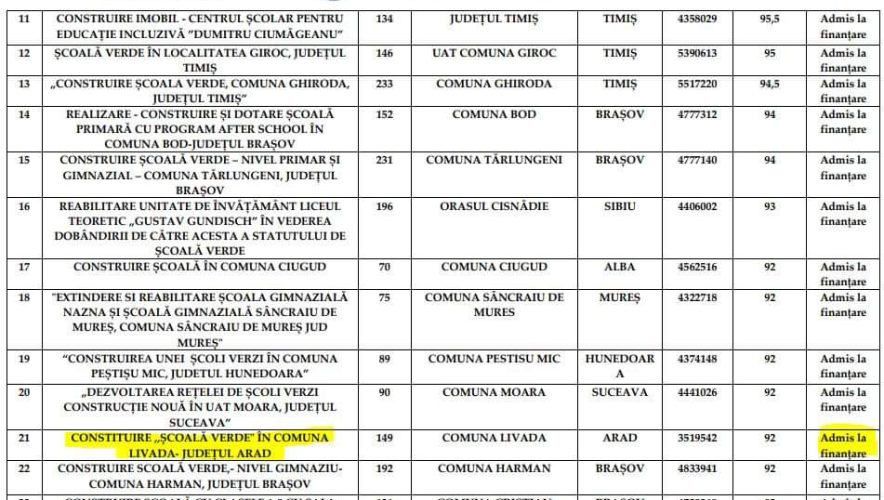 Suntem singura primărie din județul Arad care a atras finanțarea. Vom construi o clădire nouă cu 2.200 de metri pătrați utili. Va fi un spațiu modern la dispoziția copiilor noștri din Livada și Sânleani. Clădirea va fi construită în curtea școlii din Livada”, a declarat Iosif Bimbo, primarul comunei Livada.
