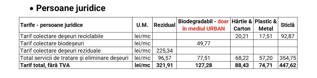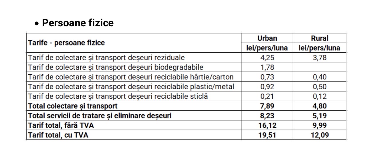 Această modificare tarifară este determinată de factori precum creșterea salariului minim pe economie începând cu 1 ianuarie 2025, modificarea sistemului de colectare a deșeurilor de sticlă și inflația acumulată de la ultima actualizare a tarifelor.