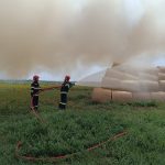 Incendiul se manifestă la aproximativ 200 de baloți.