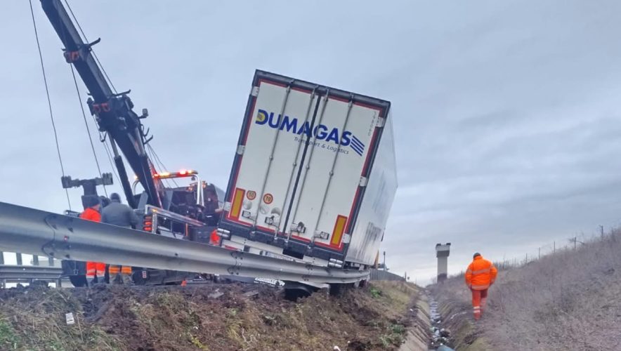 Până în jurul orei 13, pe A1, km 508+300, Giarmata, sensul Arad – Timișoara, se circulă doar pe banda 2. Banda de urgență și banda 1 sunt închise în urma unui accident rutier.