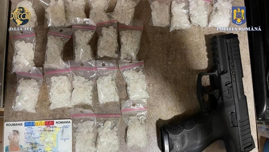 În urma perchezițiilor domiciliare efectuate, au fost identificate și ridicate sumele de 188.423 lei și 3.784 euro, cantitatea de 255 de grame drog de mare risc 3 – CMC, 12 cutii, flacoane și blistere cu steroizi, 3 grindere cu urme de materie vegetală, plicuri cu urme de substanță, mai multe ustensile folosite pentru consumul de droguri, cu urme de substanță, 26 de telefoane mobile, 2 tablete, 16 ceasuri, 1 DVR și 2 arme, una cu glonț și una de tip airsoft.