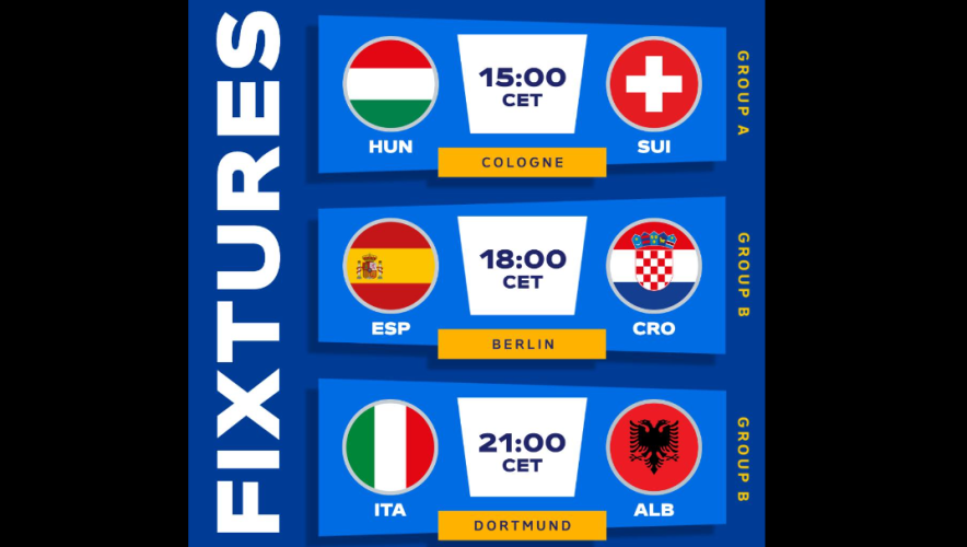 Ziua a început cu partida din Grupa A dintre Ungaria și Elveția, disputată pe Rhein Energie Stadion din Koln și încheiată cu succesul formației pregătite de Murat Yakin, 3-1. Fosta adversară a României din preliminarii a fost clar superioară maghiarilor în prima parte, iar deschiderea de scor a venit în minutul 12. Aebischer l-a lansat pe Kwadwo Duah spre poarta Ungariei, iar atacantul aflat la doar a doua selecție l-a învins pe Gulacsi. Inițial, tușierul a ridicat fanionul, însă reușita a fost validată din camera VAR. Servant la prima reușită, Michel Aebischer a înscris-o pe cea de-a doua în minutul 45, cu o execuție frumoasă lângă bară din afara careului. După pauză, maghiarii au etalat un joc puţin mai consistent, iar în minutul 66 au reuşit să reducă din diferenţă. Szoboszlai a trimis o centrare bună în careu, iar Barnabas Varga i-a luat fața lui Aebischer la colțul lung și a trimis cu capul în plasa porții lui Sommer. Mai apoi, Elveția a revenit la conducerea jocului, iar după mai multe oportunități irosite, Breel Embolo a marcat golul care a asigurat cele trei puncte, în minutul 90+3. După o degajare a lui Sommer, Orban a încercat să devieze cu capul spre propriul portar, însă a trimis mingea exact la atacantul celor de la Monaco, care l-a lobat elegant pe Gulacsi.