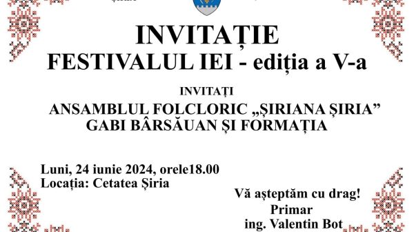 ”Totul este pregătit pentru astăzi la ora 18:00 la Cetatea Șiriei, unde sărbătorim Ziua Iei Românești! Vă așteptăm cu mare drag alături de artiști, dansatori și de Gabi Bârsăuan”, adaugă primarul Șiriei Valentin Bot.